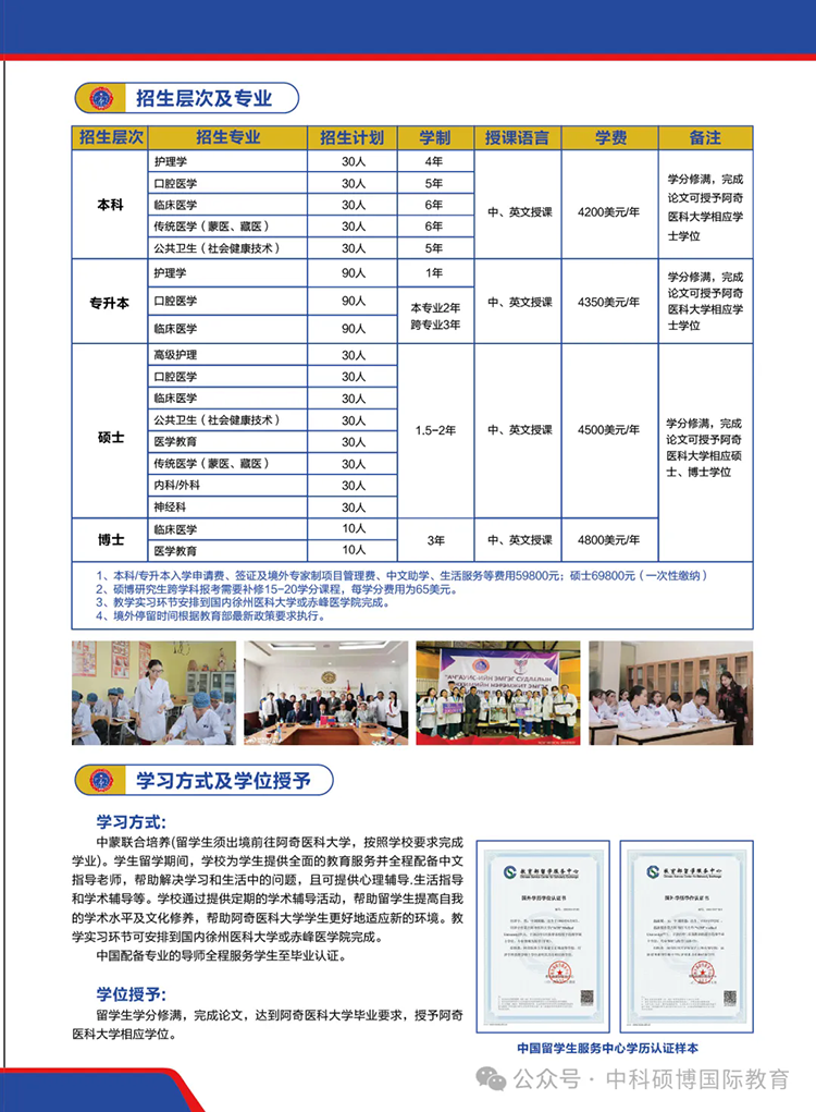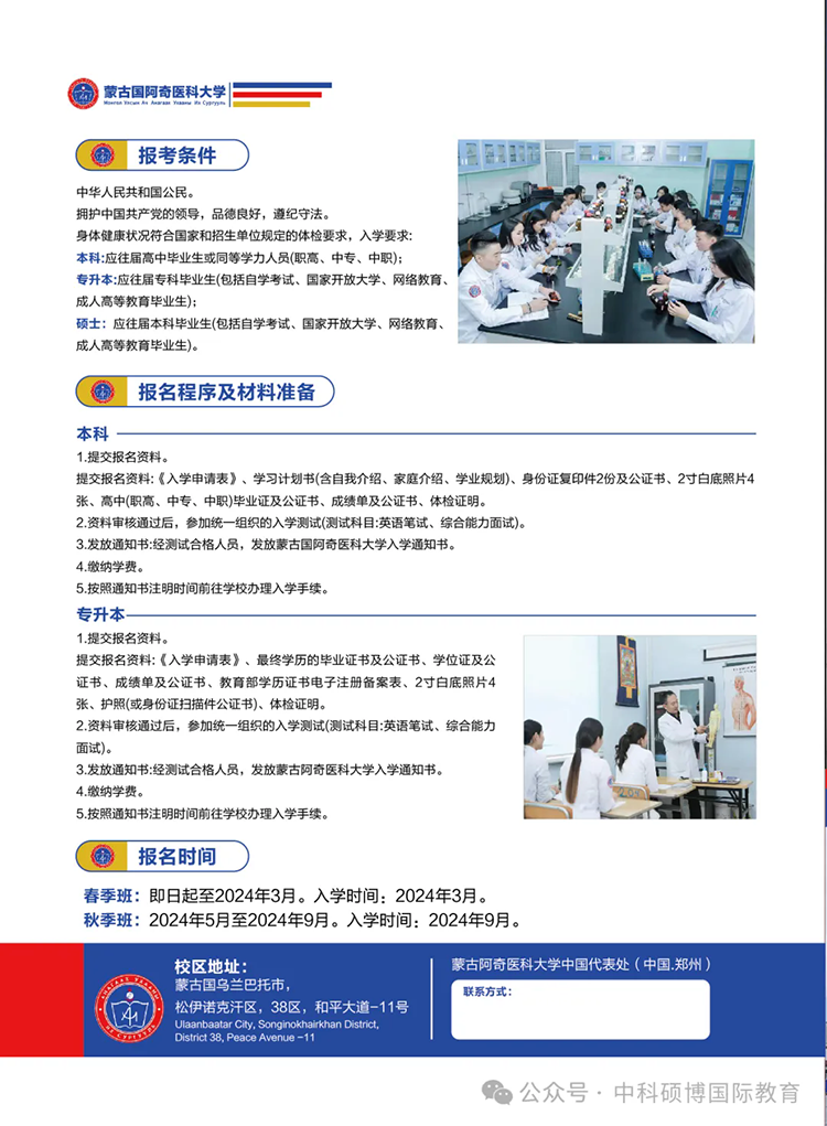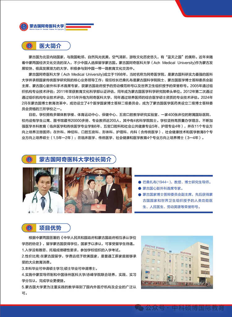 2024年蒙古国阿奇医科大学本硕博招生简章